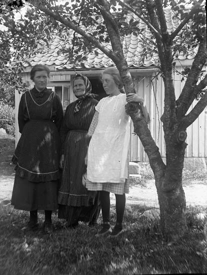 Enligt notering: "Tre kvinnor, tre åldrar, tre kjollängder, Anna Krok, Lena Krok, Märta Krok, Skistad".