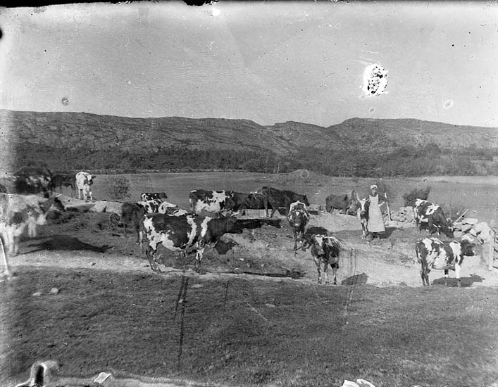 Enligt notering: "Med korna i hagen. Från Karlslund, Hedda Örn".