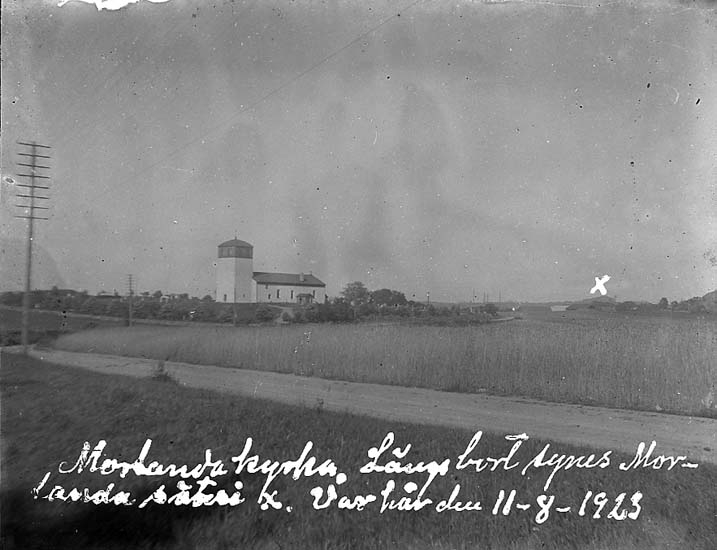 Enligt text på fotot: "Morlanda kyrka. Längst bort synes Morlanda säteri x. Var här den 11-8-1923".