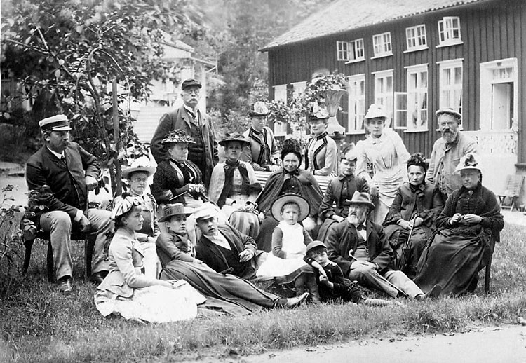 Skriven text på baksidan: Sommaren 1890. 20/8. Ing. C.G. Wittenström, Fru Hilda Wittenström, Carl jr. Wittenström, Borgm. Radhe, Fru Radhe, Anders Radhe, Anna Radhe, Olga Radhe, Elsa Radhe, Prof. Berglind, Fru Berglind, Olga Berglind, Carry (?) Öhman, Rev. sekr. Reutersvärd, Fru Reutersvärd.
