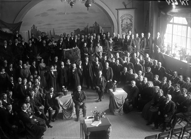 Enligt tidigare noteringar: "Gruppbild från Logen 3127 Alfhem, IOGT, möte i i Frideborg, Uddevalla."