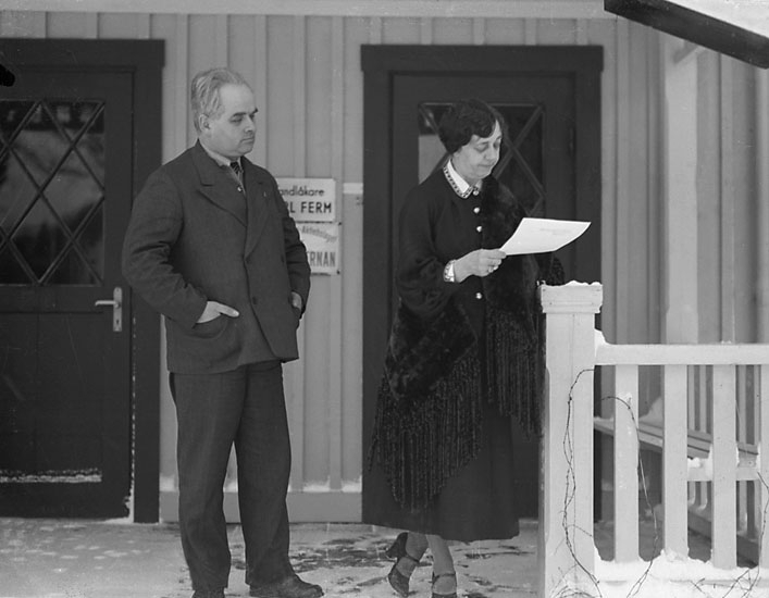Enligt senare noteringar: "Man och kvinna på förstubro. Troligen tandläkare Gybergs villa." (BJ)