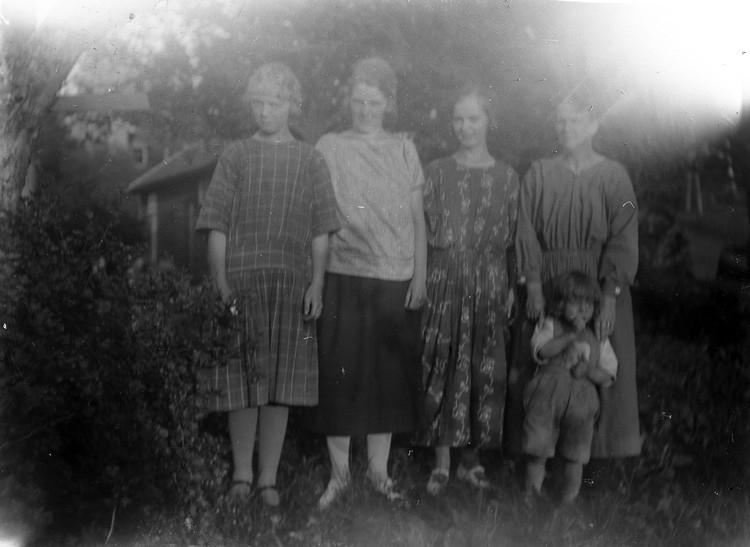 Titel: Kvinnor och barn i trädgård