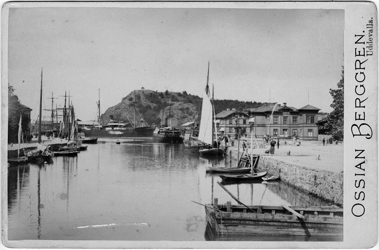 Enligt text skrivet på kopian: "Hamnen, Uddevalla, omkr.1900".
