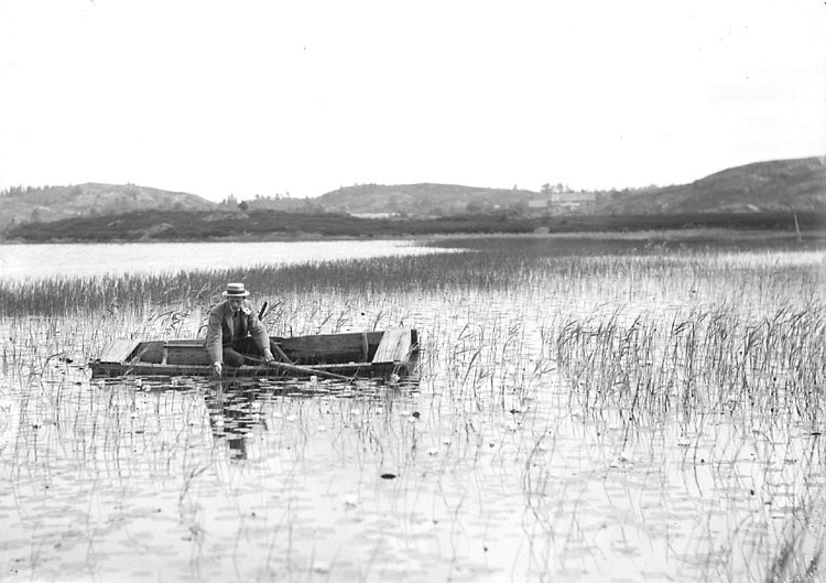 Enligt noteringar: "Platsen okänd, men kan vara någonstans i Munkedalsälvens sjösystem. Båten liknar den typ av platteka som MAB (Munkedals AB) använde vid flottning och som kallades 'bolagspråm'. Dessa båtar var gjorda av snickare på bruket." (BJ)