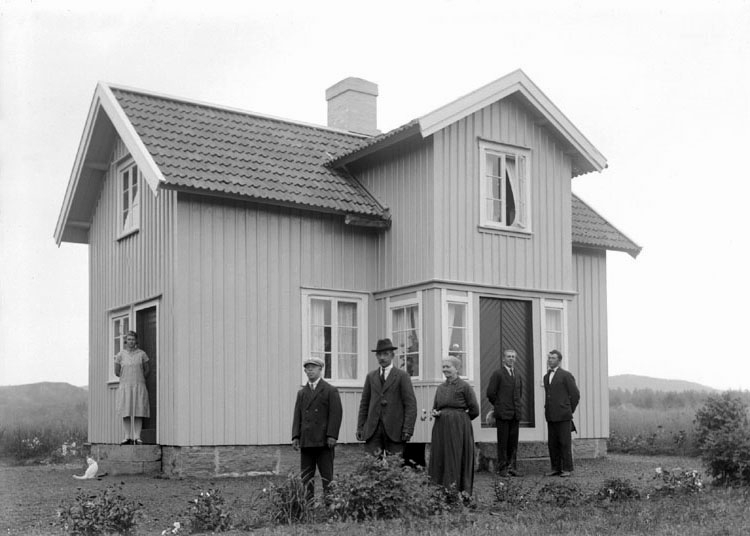 Enligt senare noteringar: "Familjen Karl Nicklasson, Kleva, utanför sitt hem.