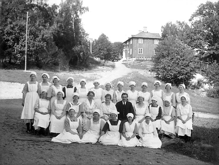 Enligt senare noteringar: "Skolköksgrupp utanför Lanthushållsskolan.