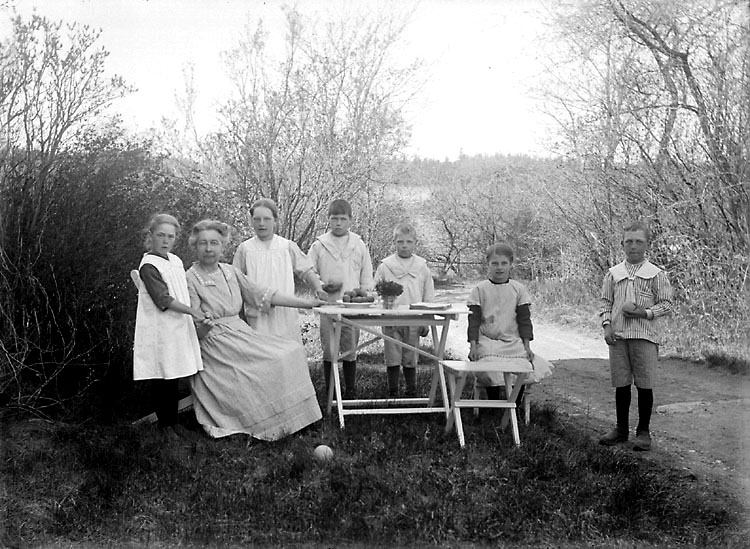 Enligt noteringar: "Skolklass, Vässby privatskola, Torreby. Lärarinnan Laura Sandström (smeknamn "Lalla").