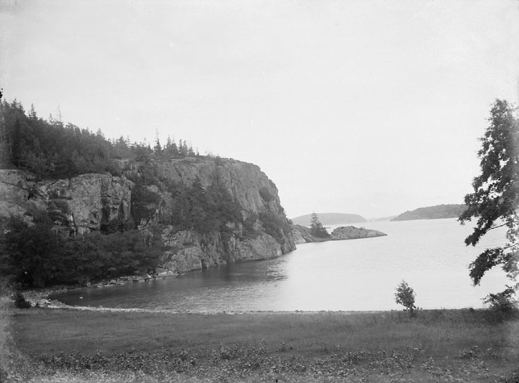 Enligt noteringar: "Stranden vid Svinevik i Färlevfjorden. I fjordens mitt syns Lilla Bornö." (BJ)