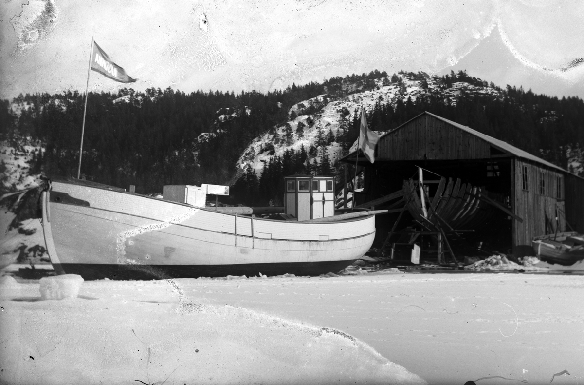 Fiskebåten Anndora av Åstol i snöklädd hamn