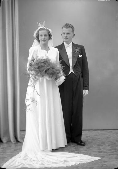 Enligt fotografens journal nr 7 1944-1950: "Wallström, Brudp. Lennart, Ödsmål".