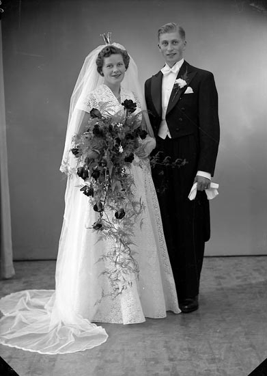 Enligt fotografens journal nr 8 1951-1957: "Bäckman, Brudparet Sture, Borgarg. 15 Gbg Ö".