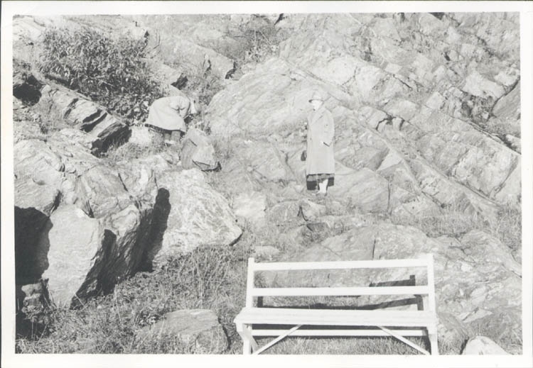 Noterat på kortet: "Marstrand. Far och mor vid promenadvägen vid södra inloppet. 4.11.1961."