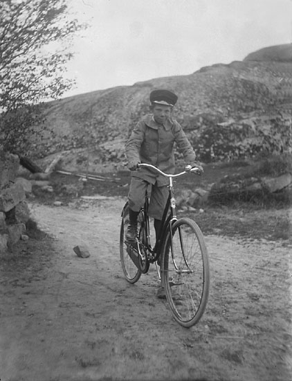 Enligt noteringar: "En ung cyklist, Gösta cyklar".
