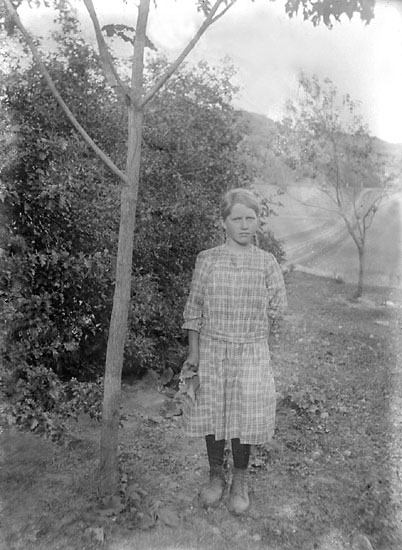 Enligt noteringar: "En flicka med flätor, Irma Larsson, Norr-Edsten".