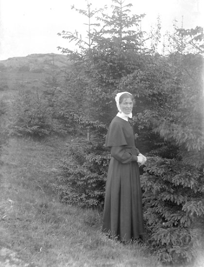 Enligt noteringar: "Kvinna i skogsbryn, Hilda Andersson, Trättestad, Diakonissa".