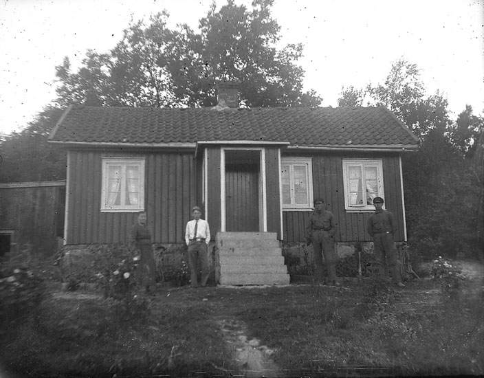 Enligt notering: "Fyra karlar framför hus, Gillberg".
