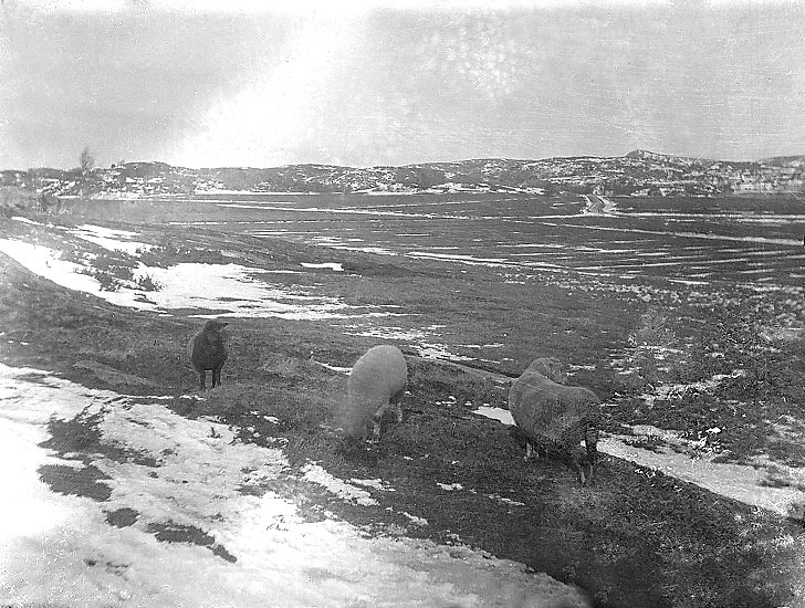 Enligt noteringar: "Landskapsvy med får i förgrunden".