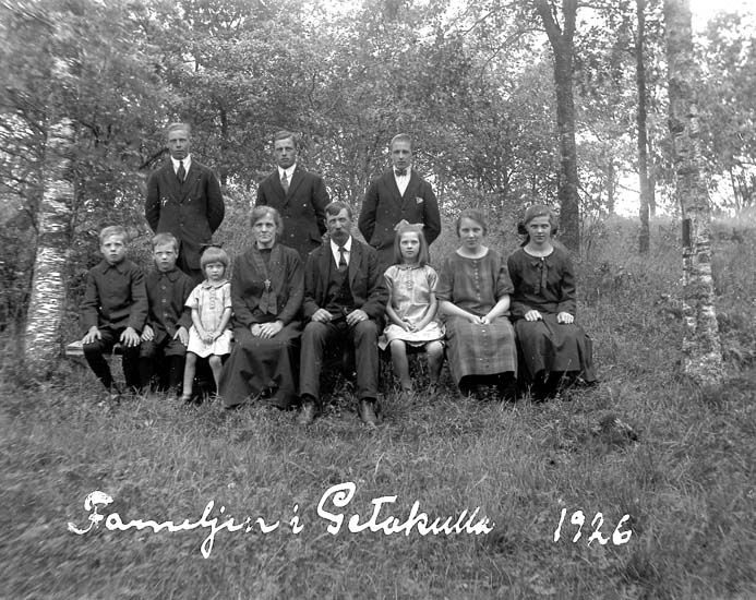 Skrivet på bilden: "Familjen i Getakulla, 1926."