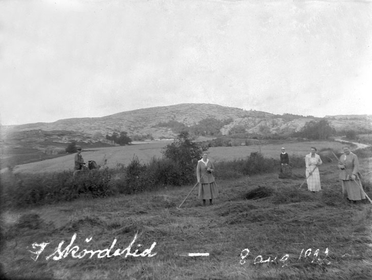 "I skördetid 8 aug. 1922. Bergen i bakgrunden kallas Valöberget" enligt notering.