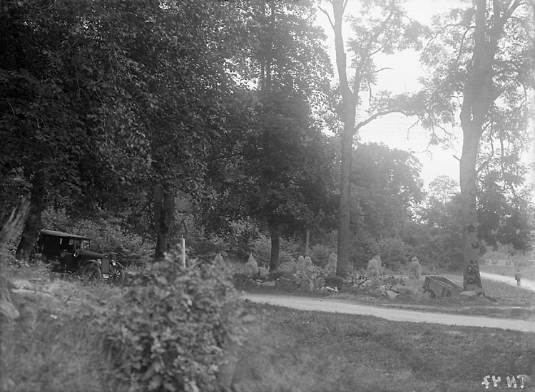 Enligt senare noteringar: "Höjentorp vid vägkorset vid Kristinedal, Gustafsberg. Bil synlig till vänster i bild."