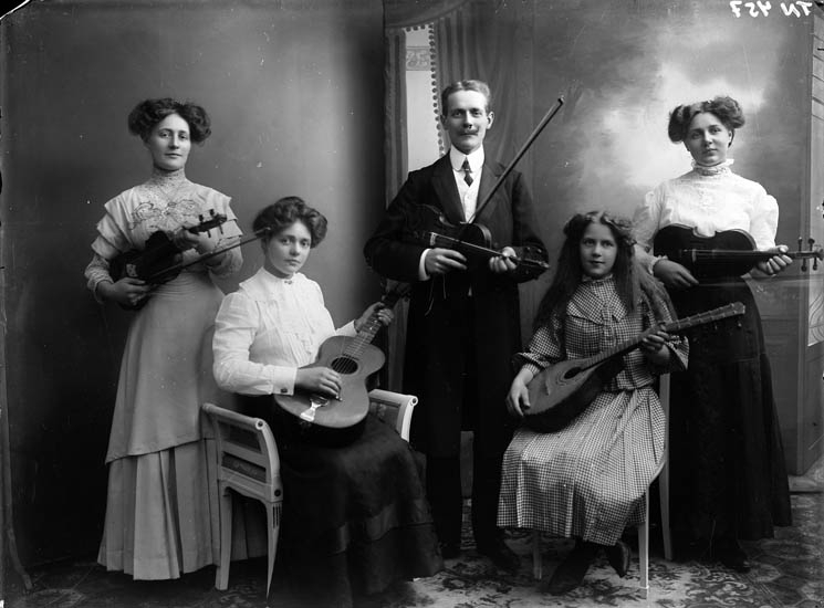 Enligt tidigare noteringar: "Ateljéfoto, gruppbild av musikkapell, syskonkvintett."