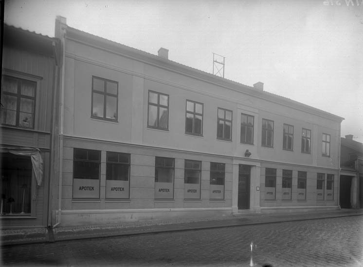 Enligt tidigare noteringar: "Apoteksfastigheten Norra Drottningsgatan 15 Uddevalla."