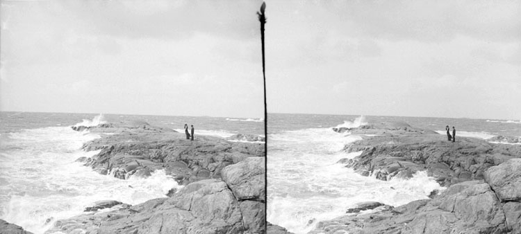 10 Augusti 1902. Bränning utmed udden, med Anna o Allan L (Landin). (Stereo karta IV)
