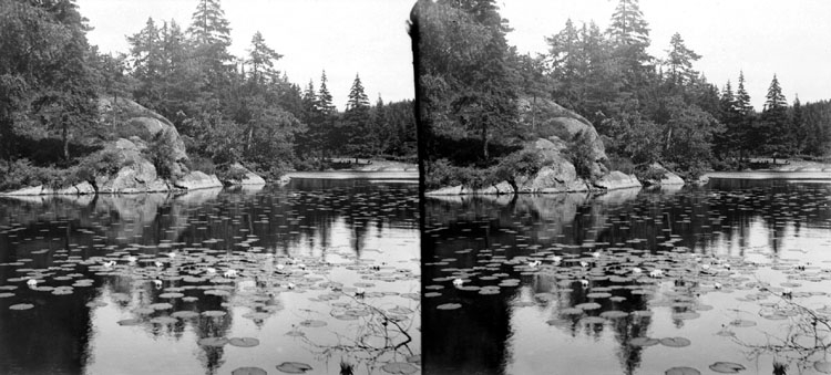 (Stereo karta V) Sidevattnet. Näckrosor i förgrunden tagen mot planen, 10 Juli 1904.