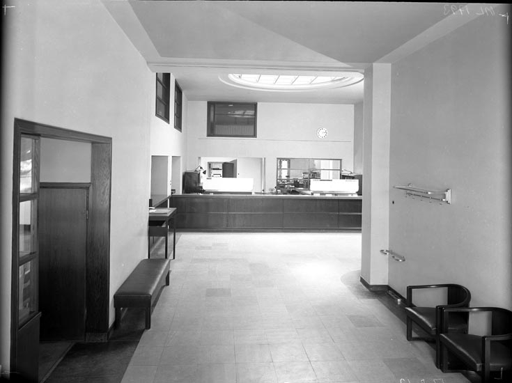 Titel: Uppgift enligt fotografen: "Uddevalla. Interiör. Sparbanken. Juli 1935."