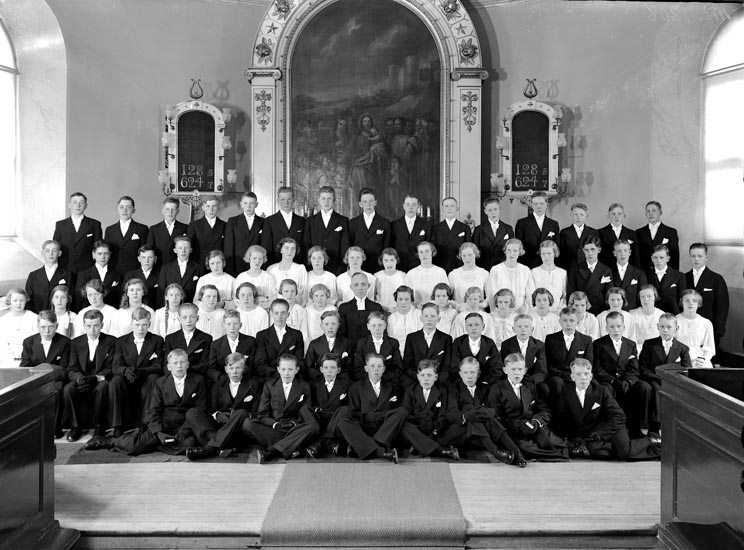 Uppgift enligt fotografen: "Uddevalla. Konfirmander. Pastor Högberg."