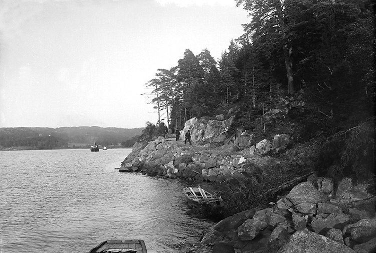 Enligt tidigare noteringar: "Vägen vid Rödön mot Lindesnäs från Gustafsberg, från väster den s.k. strandvägen."