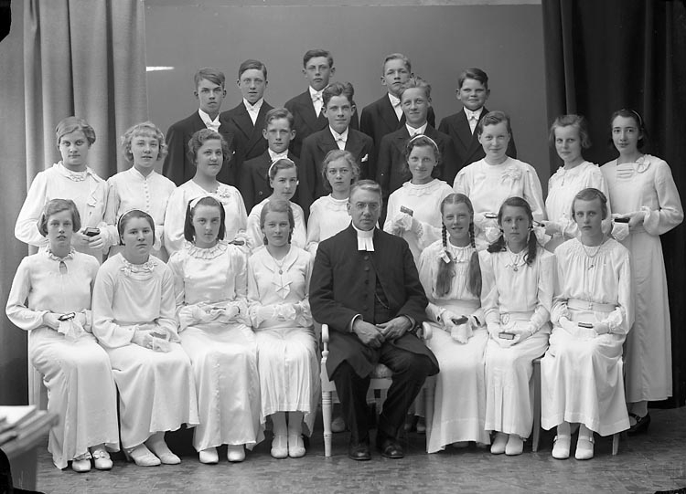 Enligt fotografens journal nr 5 1930-1943: "Ödsmåls Konfirmander Prosten Franck".