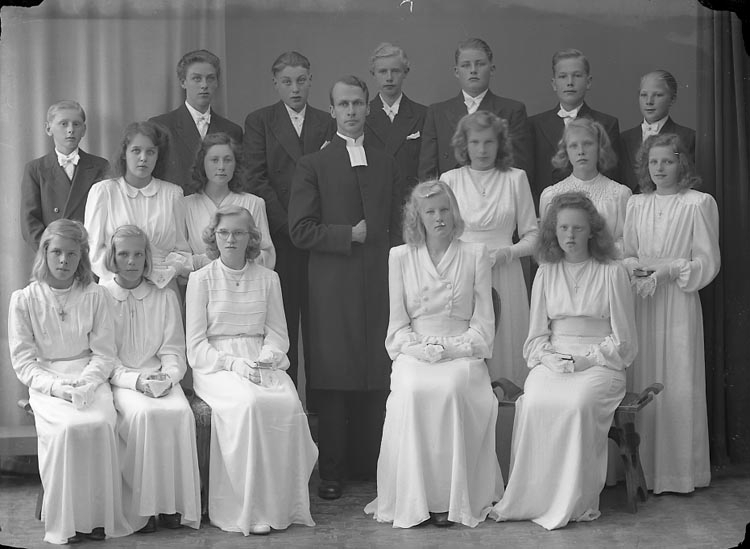 Enligt fotografens notering: "1944 Pastor Rhedin Norums konfirmander, Stenungsund".