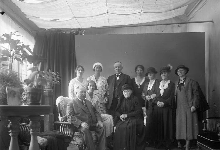 Enligt fotografens notering: "Fru Tora Zetterlöf, Häradsskrivare Z, Ingrid Z, Elin Willander, Gunnar Z, Fru Charlotta Z, Lektor Arfwidsson, Elin Enander, Sally Lorentzon, Ingeborg E.".