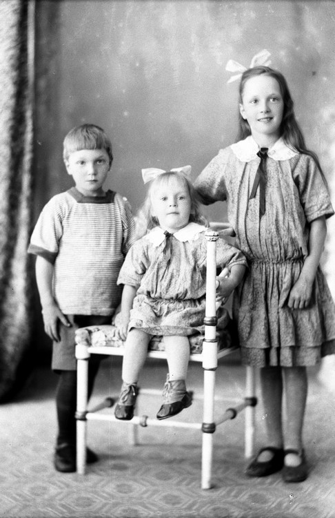 Syskonen Gösta, Karin och Inga, kusinbarn till fotografen Oscar Färdig