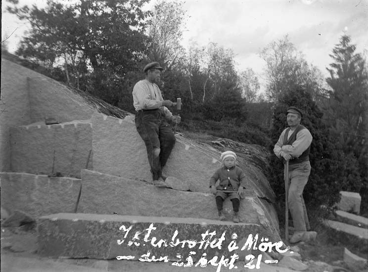 Enligt text på fotot: "I stenbrottet å Möre. 25 september 1921"
