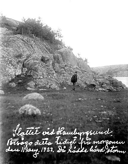 Johans text på fotot: "Slottet vid Hamburgsund. Besågo detta tidigt på morgonen