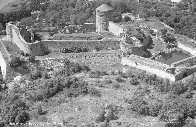 Enligt text på fotot: "Flygfoto över Bohus fästning, Kungälv".