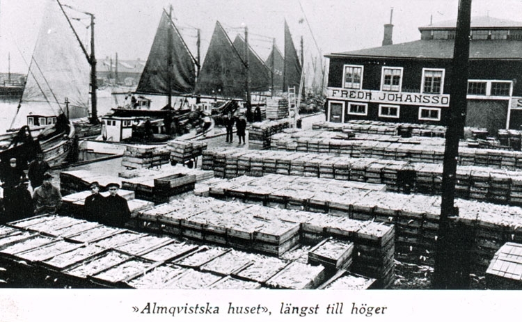 Bildtext på skioptikonplåten: "Almqvistska huset", längst till höger."