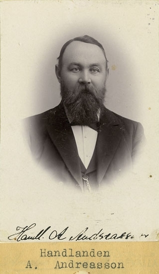 Text på kortets baksida: "Handlanden Alfred Andreasson".