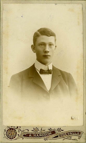Text på kortets baksida: "Artur Olsson typograf Uddevalla, d. 1958".