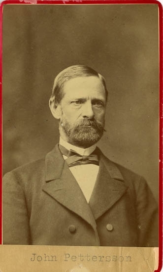 Text på kortets baksida: "Direktör John Pettersson, f. 27/11 1834 d. 9/4 1912. S. F. 1869 1908".