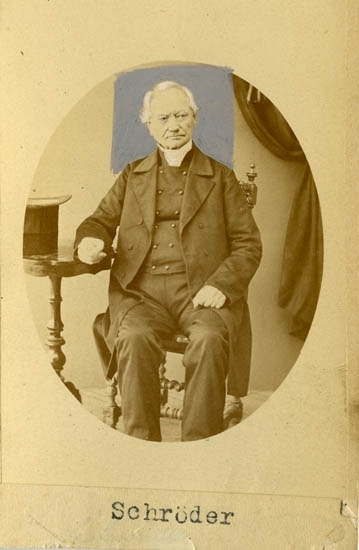 Text på kortets baksida: "Carl Henrik Schröder, f. 1790 d. 1865. Kurhussyssloman, Sparbankskassor".