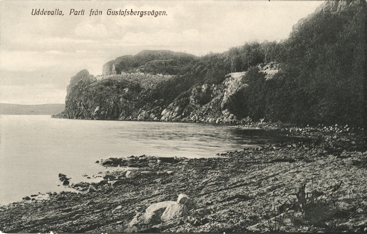 Tryckt text på vykortets framsida: "Uddevalla Från Gustafsberg."