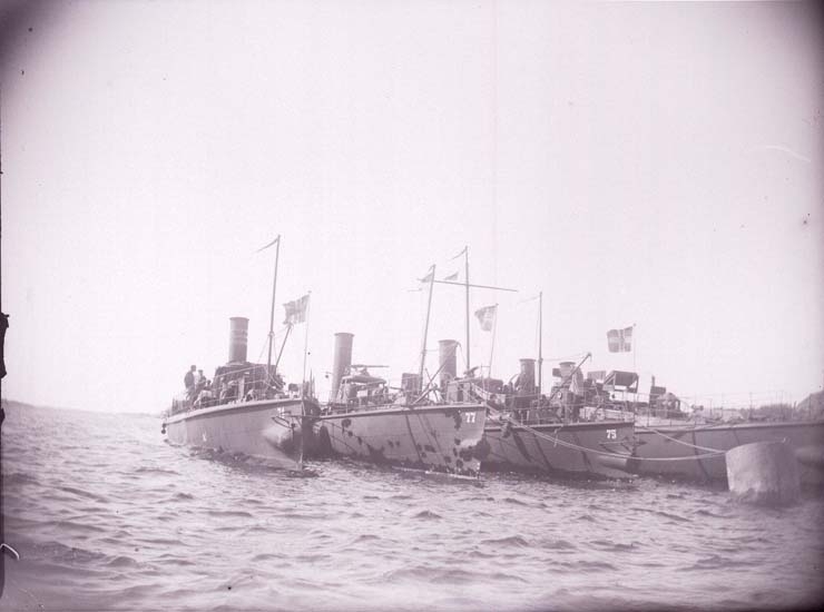 Enligt text som medföljde bilden: "Svenske Torpedbåtarne Nr 5,-71,-75,-77