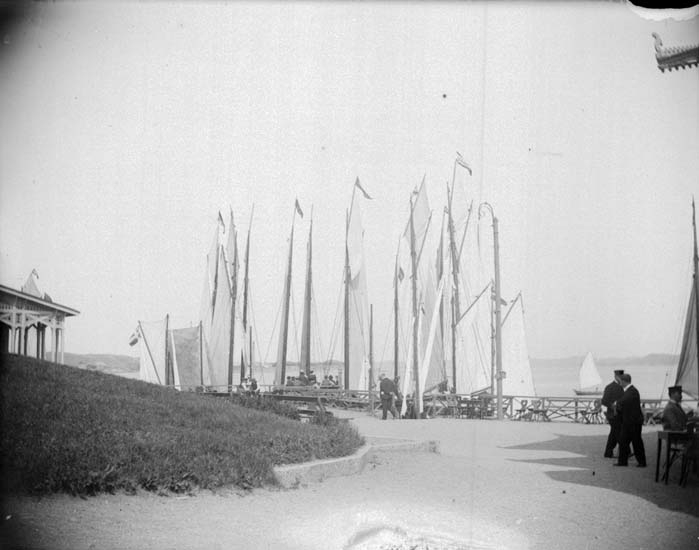 Enligt text som medföljde bilden: "Badgästbådarne från land 1899".