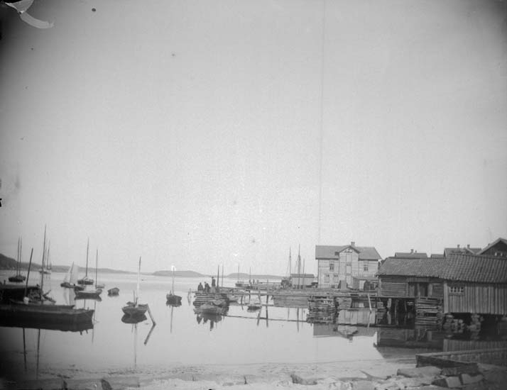 Enligt text som medföljde bilden: "Lysekil. Sjöbodarne vid Norra Hamnen tagna från Sanden. 27/8 99".