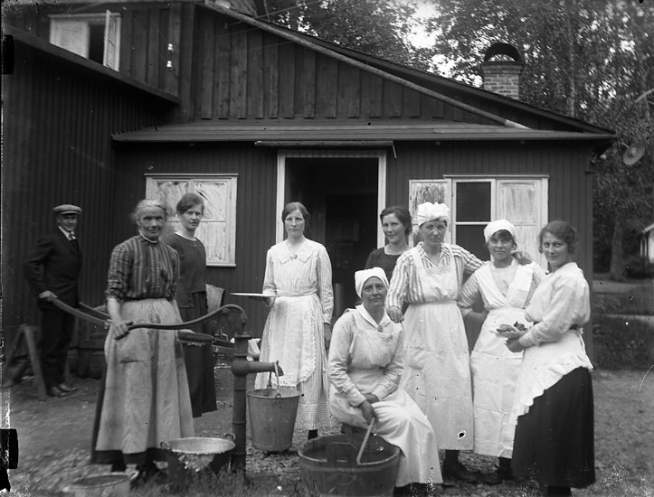 Enligt notering: "Kvinnor vid brunnen, Dals Rostock".