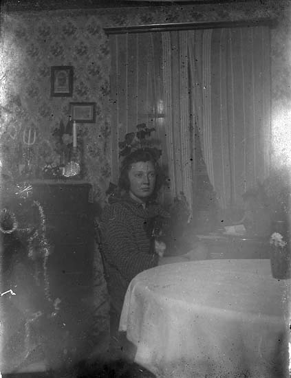 Enligt notering: "Kvinna med knähund. Lis Olsson, Skistad".